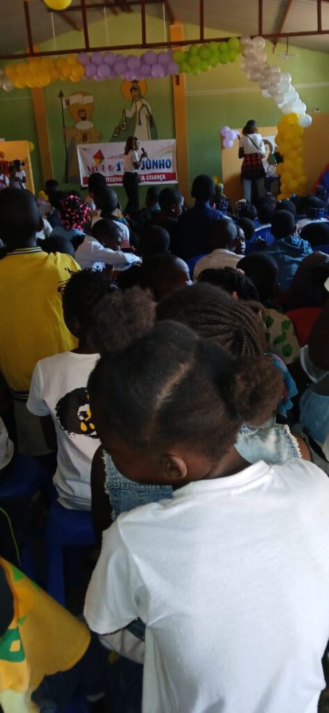 Els Kudielela acompanyats de les nostres Mercedàries Missioneres, la Fina, la Lolita, la Bibi i l’Antonia, també van participar d’aquestra gran Celebració del dia Internacional de la Infància molts anaven vestits amb els «fatos» tradicionals d’Angola, altres amb la roba de «mudar», tots a punt per a la gran Celebració. Hi van haver cançons i balls, i un públic molt content de celebrar el seu Dia Internacional. Després van fer una festa a Kudielela per celebrar el dia Internacional de la Infància.
