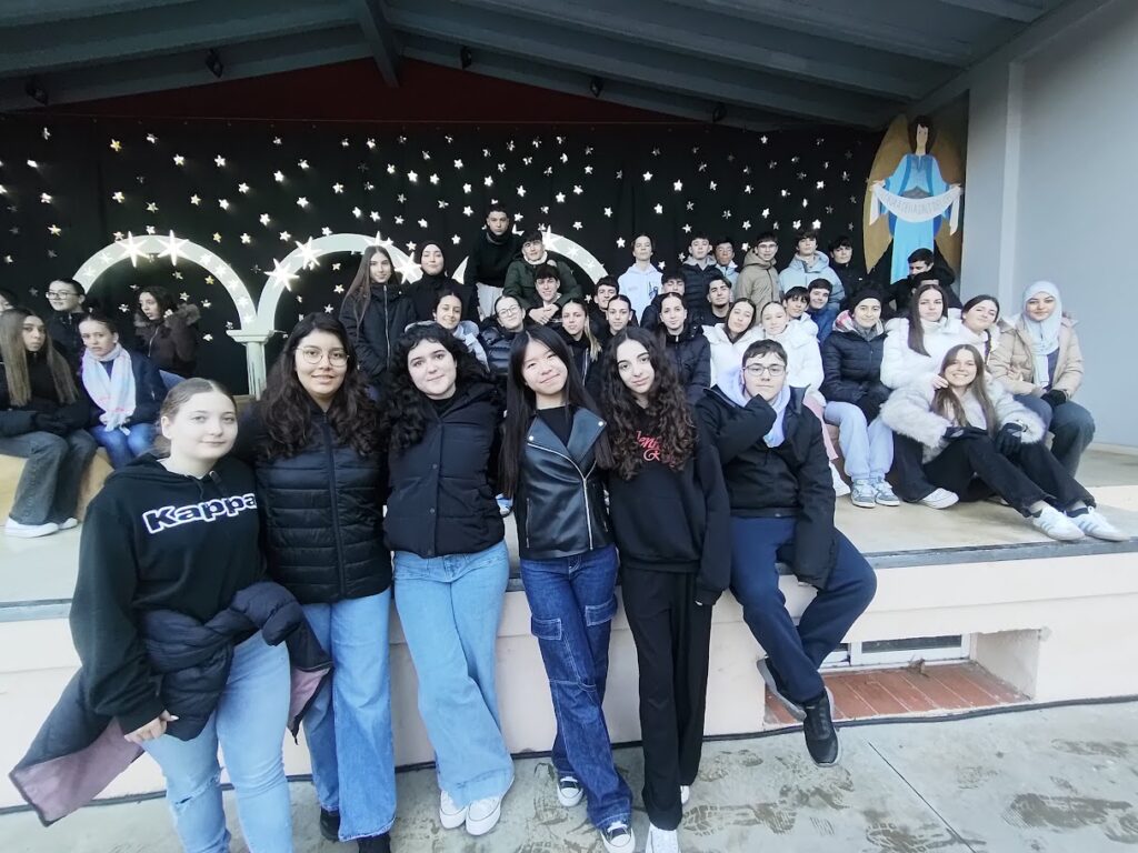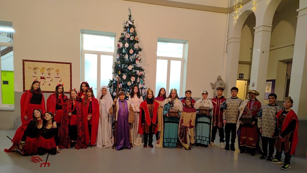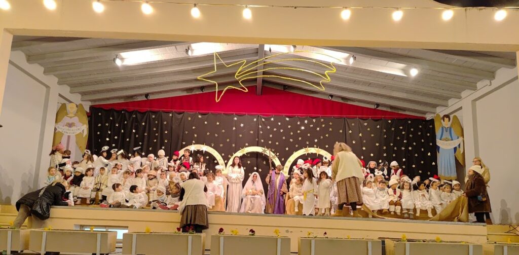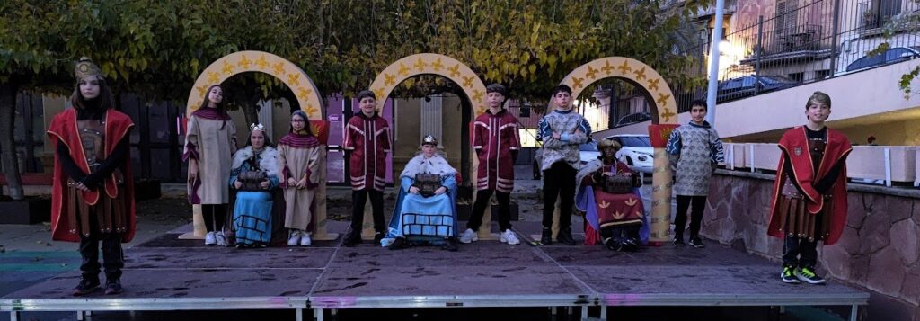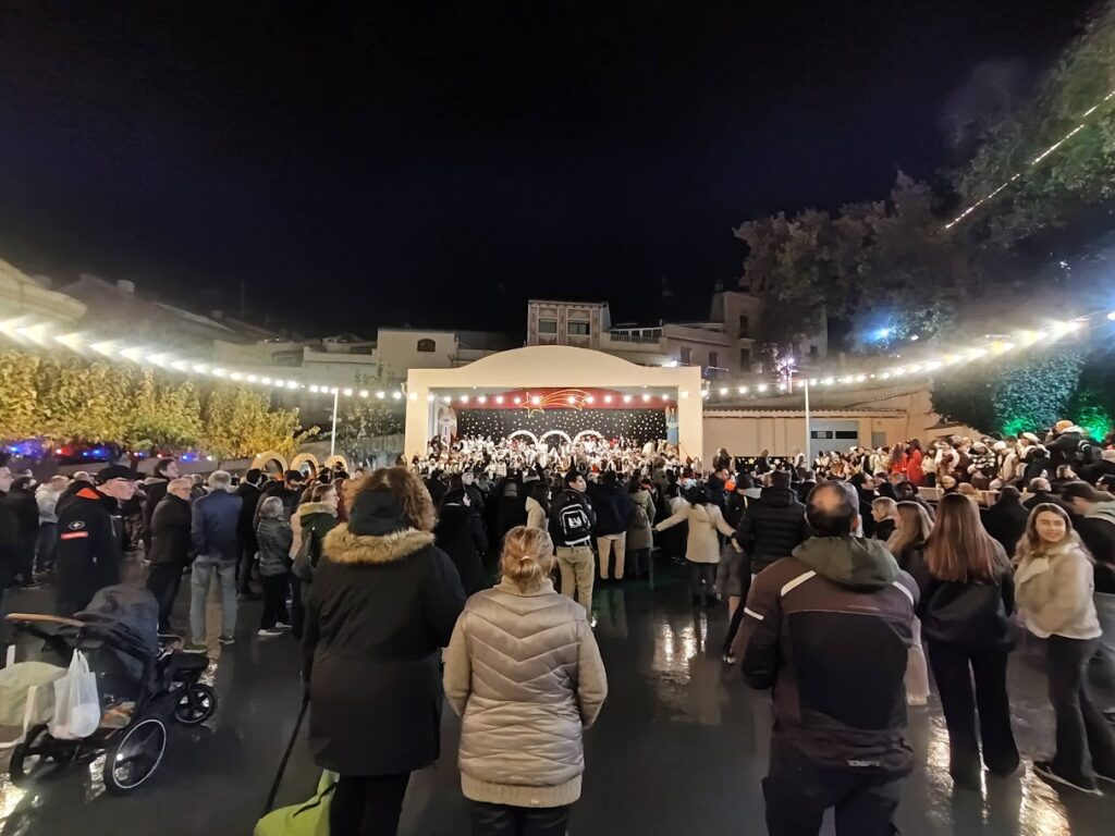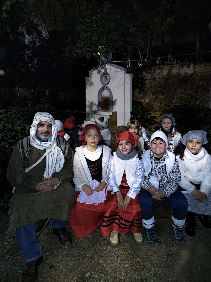 Després de l’entrada dels Mags d’Orient per anar a adorar el nen Jesús, tots els angelets, pastors i pastores i figurants del Pessebre Vivent i tot el Públic; s’han aplegat davant de la cova per cantar les nadales al Nen Jesús. Els/les alumnes han cantat 4 nadales, i s’ha acabat aquest concert cantant juntament amb el públic “El 25 de Desembre FUM, FUM, FUM”.