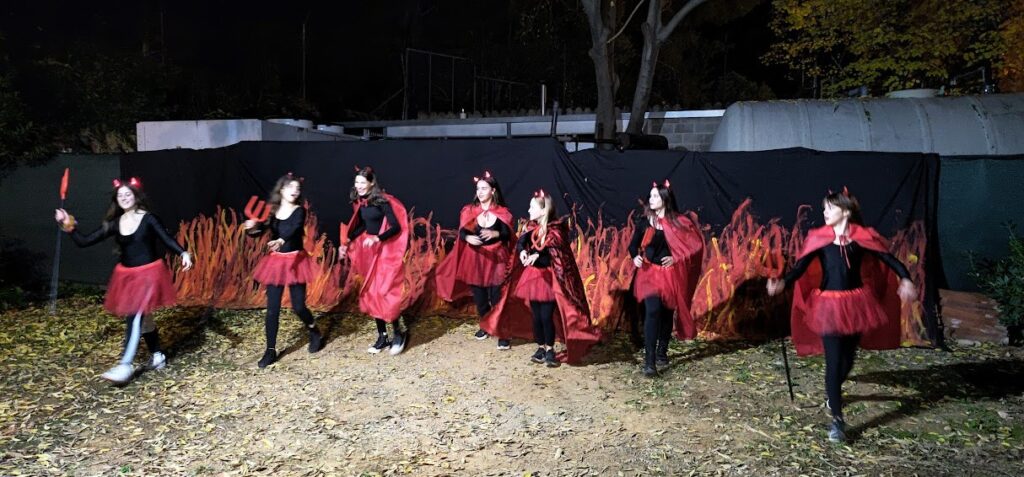 EL CAMÍ DEL PESSEBRE VIVENT com cada any, ha començat pels focs de la muntanya, en aquesta nit freda de Nadal, pastorets i pastoretes eren al ras cuinant el seu sopar amb els focs, més endavant pastors i pastores anaven a buscar aigua al molí i al pou per donar de beure el seu bestiar. Al fons el Castell d’Herodes presidia tota la vall de Judea. Al final d’un camí fosc i molt abrupte s’hi trobaven les Diablesses amb Satanàs fent els seus balls infernals. Seguint el camí de Judea, tothom ha pogut arribar als oficis de Betlem; sabaters/es, fusters/es, forners/es, cosidors/es; tots treballant a la Nit de Nadal. Al riu Jordà, pastorets i pastoretes rentaven la seva roba. Ben a prop l’Escola de Betlem amb els i les alumnes que escoltaven la mestra. Més endavant el Mercat de Nadal, un cop passat el riu, un mercat amb: carn, peix, ous, fruites i verdures; que pastors i pastores compraven per portar a Jesús. Al fons la Cova on es trobaven Jesús, Maria i Josep, amb l’ Arcàngel Gabriel i angelets/es i pastorets/es que havien anat a adorar el Nen Jesús. Cap a Orient ses Majestats el Reis Mags, amb els Patges Reials i els Romans que els acompanyaven, han portat al Nen Jesús: Or (com a símbol dels Reis), Encens (com a símbol dels Sants) i Mirra (com a símbol dels homes).