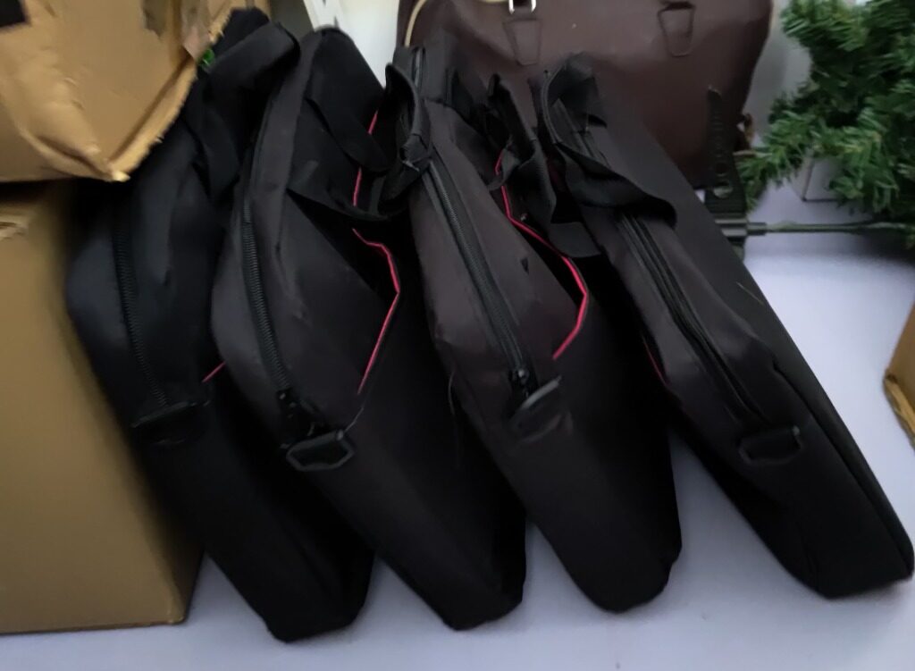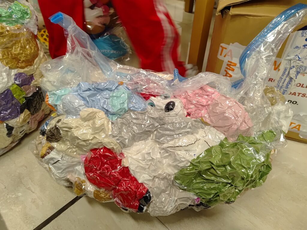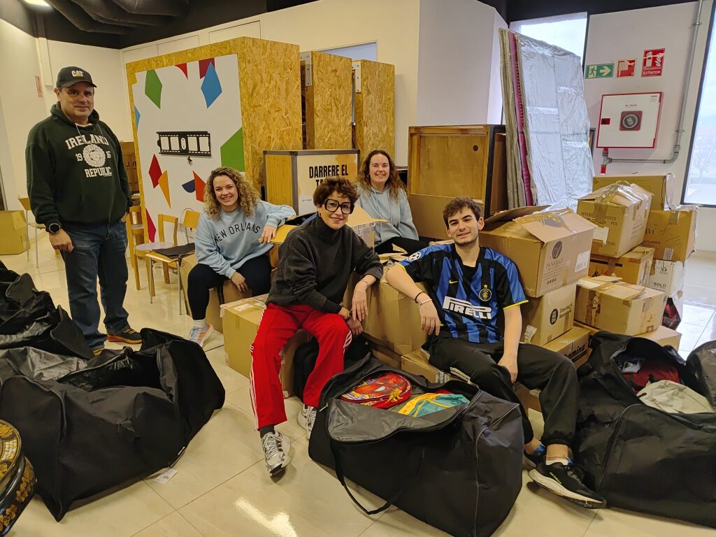 En aquests Equipatges Solidaris hem pogut posar tot el material que moltíssimes persones ens heu donat de manera solidària. Hem pogut col·locar a les nostres bosses: dessuadores i xandalls donació de l’AFA de l’Escola Font de l’Orpina de Vacarisses, samarretes i bosses d’esquena donació de l’Ajuntament de Martorell, botes de futbol donació de futbolistes professionals: del Pau Prim jugador de l’ Al-Sad de Qatar i del Pau Fernández de l’Esport Club Sabadell, material esportiu i bates escolars donació de la Laura Amat (padrina de Kudielela i exalumna del Col·legi la Mercè de Martorell) i de l’Empresa de la Montse Fonollà i del Rafa González, ordinadors portàtils donació del Joan Batllevell i altres particulars, regals per al professorat donació de la Perruqueria Moliné de Martorell, material escolar donació de la família Albarracín (padrins d’Angola) i moltíssims peluixos motxilles de les Campanyes de Recollida Solidària del Col·legi la Mercè de Martorell.