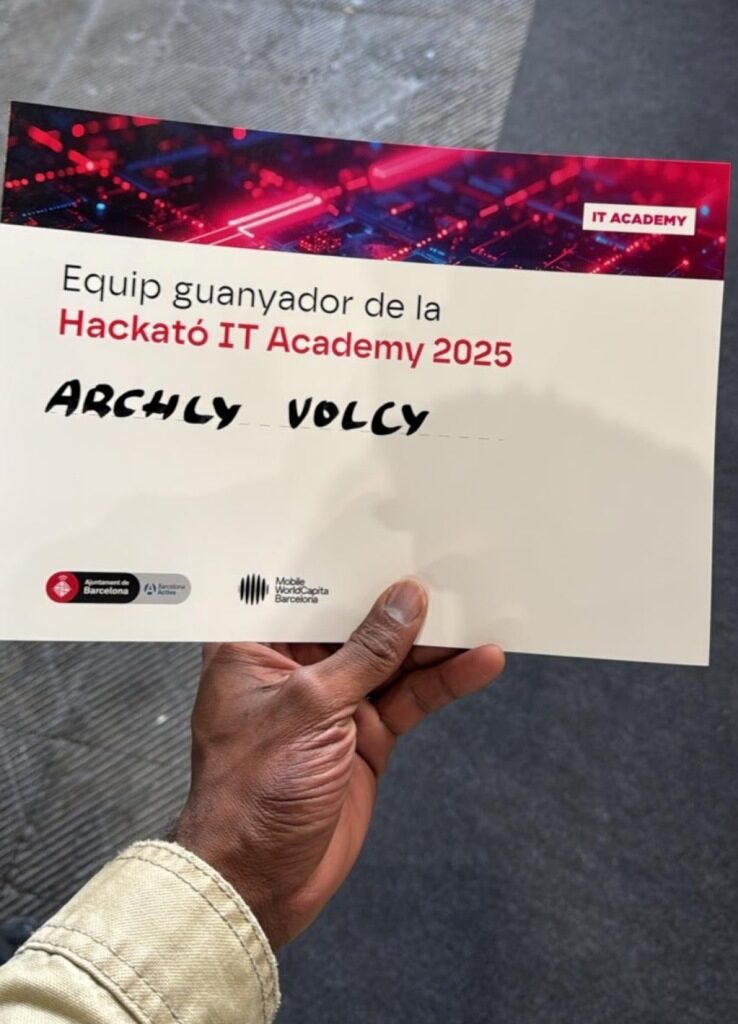 Des de l’ONG Mans Mercedàries volem felicitar l’Archly pel seu esperit de superació constant, pel seu esforç per aconseguir acabar els seus Estudis d’Informàtica i sobretot el volem felicitar perquè amb el seu treball diari i la seva constància ha aconseguit el seu somni. I el volem felicitar doblement ja que el seu equip van quedar en primer lloc en el Hackathon que van participar en el Saló Ocupacional de Barcelona.