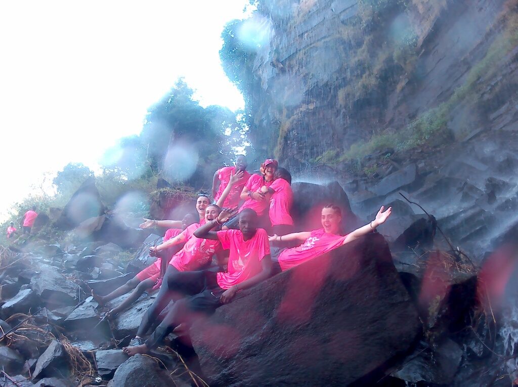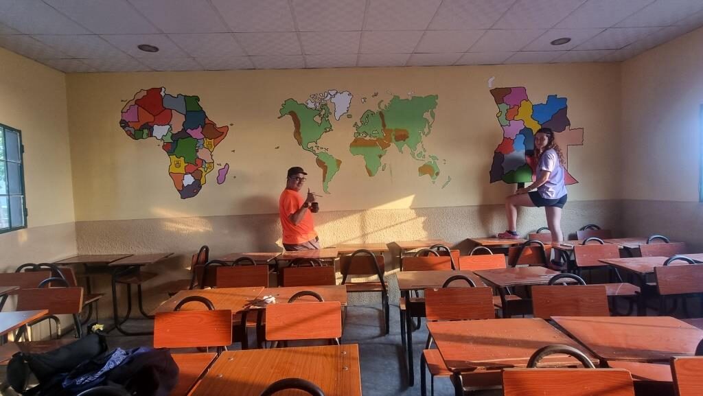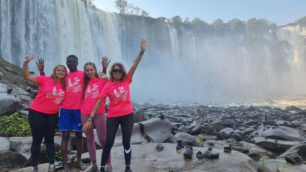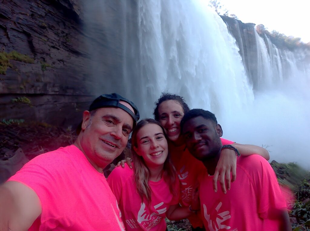 Que grans i guapíssims estaven tots els Kudielela, i tots ens volien explicar el què estaven fent, allò que els agrada o preocupa, i volien saber tot de nosaltres, i volien conèixer les noves voluntàries. Vam tornar a fer jocs, balls, a cantar cançons, a aixecar castells i també vam fer teatre. Vam repartir el munt de regals que portàvem i les fotos de padrins i padrines als nens. Vam tornar a visitar les cataractes de Kalandula i del Kwanza, i vam tornar a sentir la força de la selva, de la terra d’Angola i de la natura tan salvatge del salt d’aigua de les cataractes. La nostra feina també va ser pintar i decorar parets de l’Escola Kudielela de Montserrat Vilanova Puertas de Malanje i de l’Escola Irmã Palacios de Luanda.
