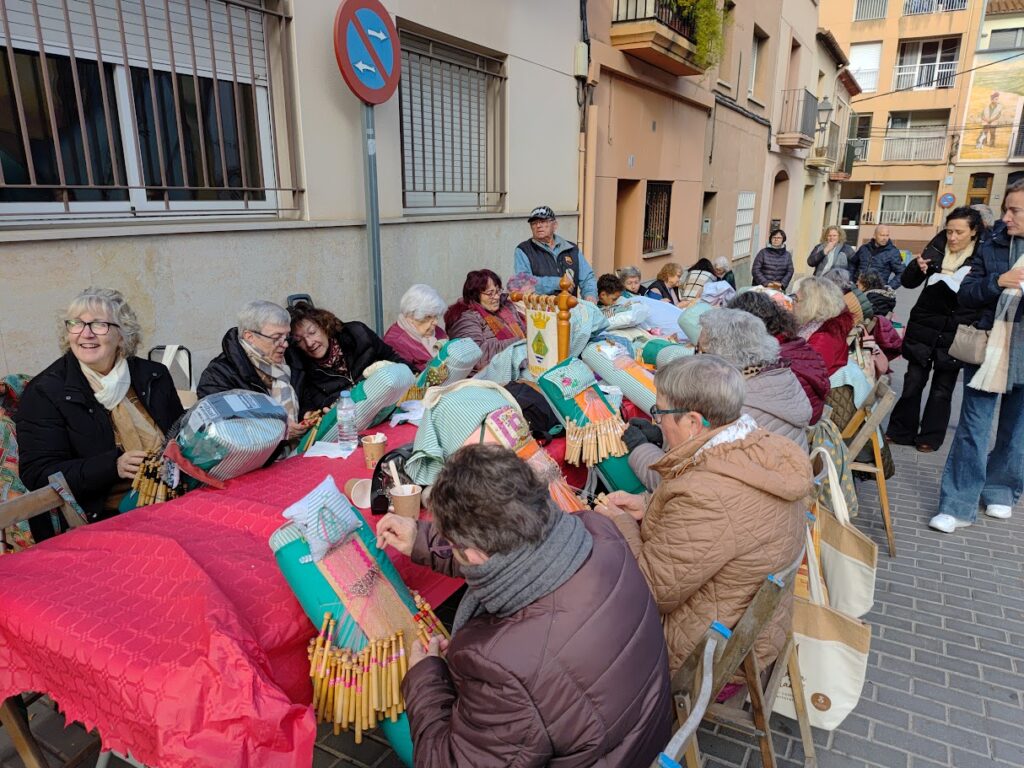 Com altres anys, les nostres puntaires no han parat de fer moure el boixets fent les seves puntes de coixí amb l’admiració de tota la gent que s’aturava per veure com feien córrer el fil. I també el carro de Nadal de la família Adell ha portat a fer un tomb a nens i nenes per tot el barri. El preciós cavall, ple de picarols s’obria camí en mig de la gent fent dringar els cascavells.