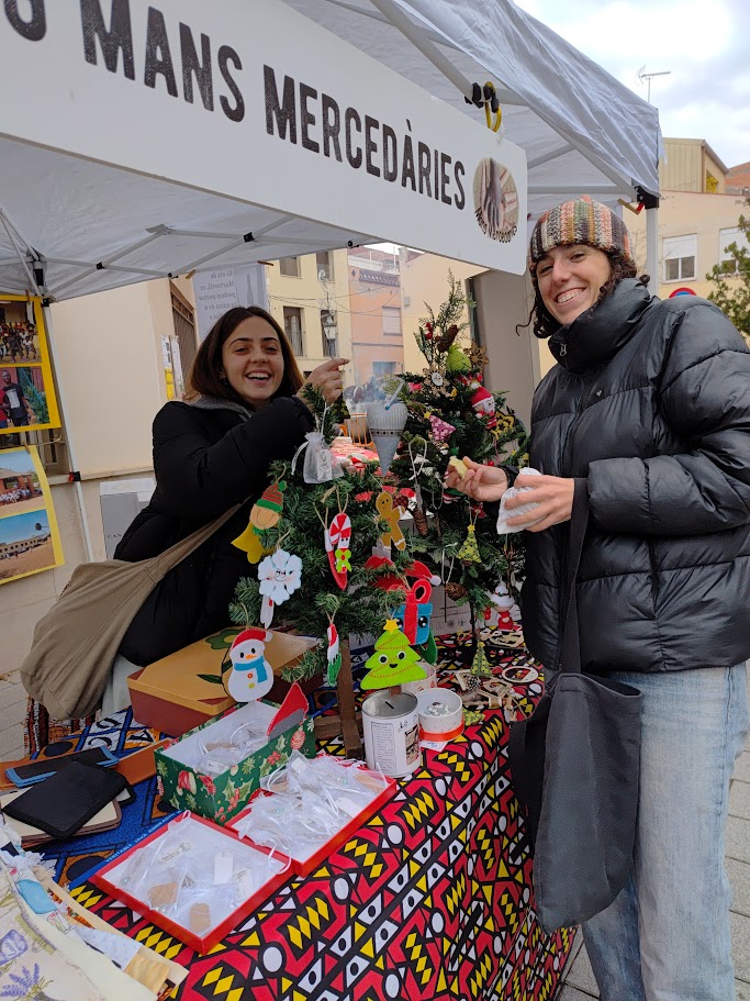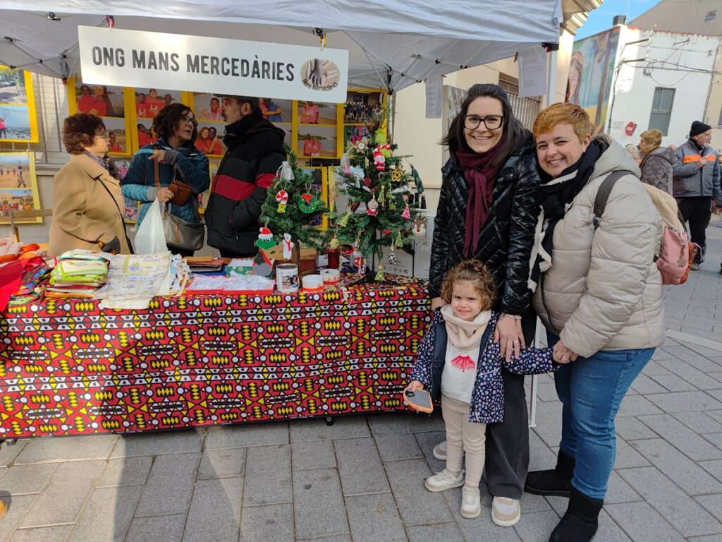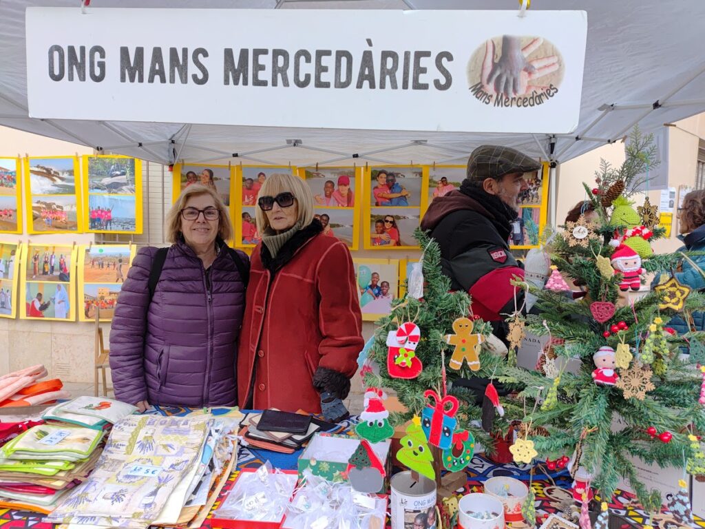 Com cada any, l’ONG Mans Mercedàries hem posat la Parada Solidària amb les Samarretes noves de l’ONG Mans Mercedàries i el  Cava de Nadal amb la nova placa d’Angola’25; l’Artesania de fusta de «Manualidades de Madera de la Irene Rojano i el Jose Ortiz, col·laboradors de l’ONG Mans Mercedàries; l’Artesania de la Marisa Ledesma la nostra Cosidora Solidària de Molins de Rei i col·laboradora de l’ONG Mans Mercedàries; l’Artesania de Nadal de la Clara Vilanova, padrina de l’ONG Mans Mercedàries i Voluntària d’Angola’25;  els Braçalets de Nadal de la Georgina Colorado, Presidenta de l’AMPA de l’Escola Lola Anglada de Martorell i col·laboradora de l’ONG Mans Mercedàries i l’Artesania de Nadal de de l’Encarna Colorado. També hem posat a la parada, com sempre, l’Exposició fotogràfica del darrer Camp de Treball: Angola’25,