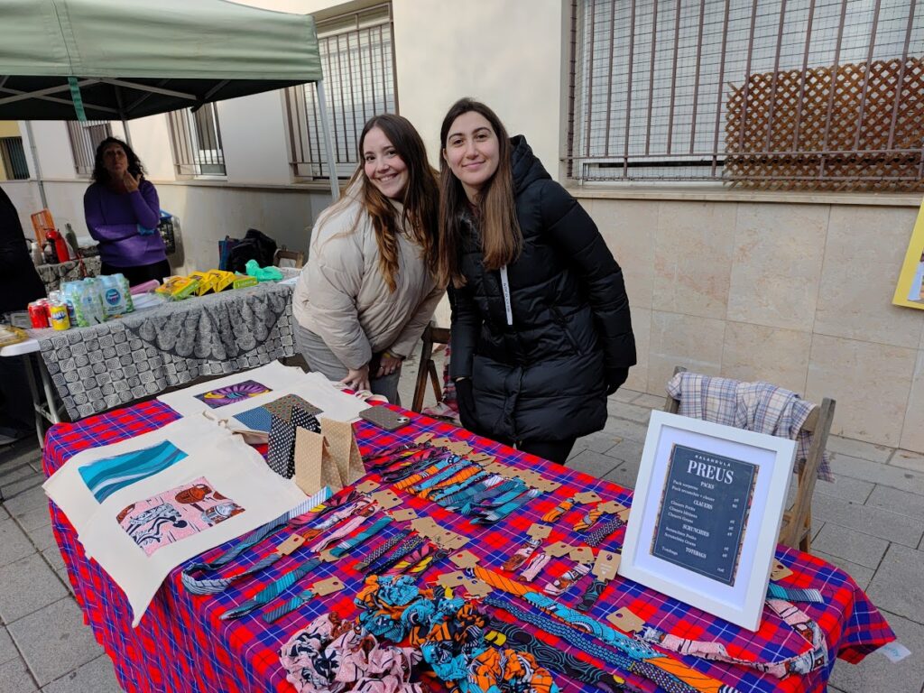 Al costat de la Parada Solidària de l’ONG Mans Mercedàries, han posat també una Parada Solidària les Padrines d’Angola  i Voluntàries d’Angola’23, amb Artesania Solidària que elles mateixes han confeccionat, per recollir fons per a Angola, ja que el proper estiu 2026, mentre l’ONG Mans Mercedàries estarem fent el 32è Camp de Treball a Kenya, elles aniran a Angola com a Padrines a visitar els Kudielela i els hi volen portar regals.