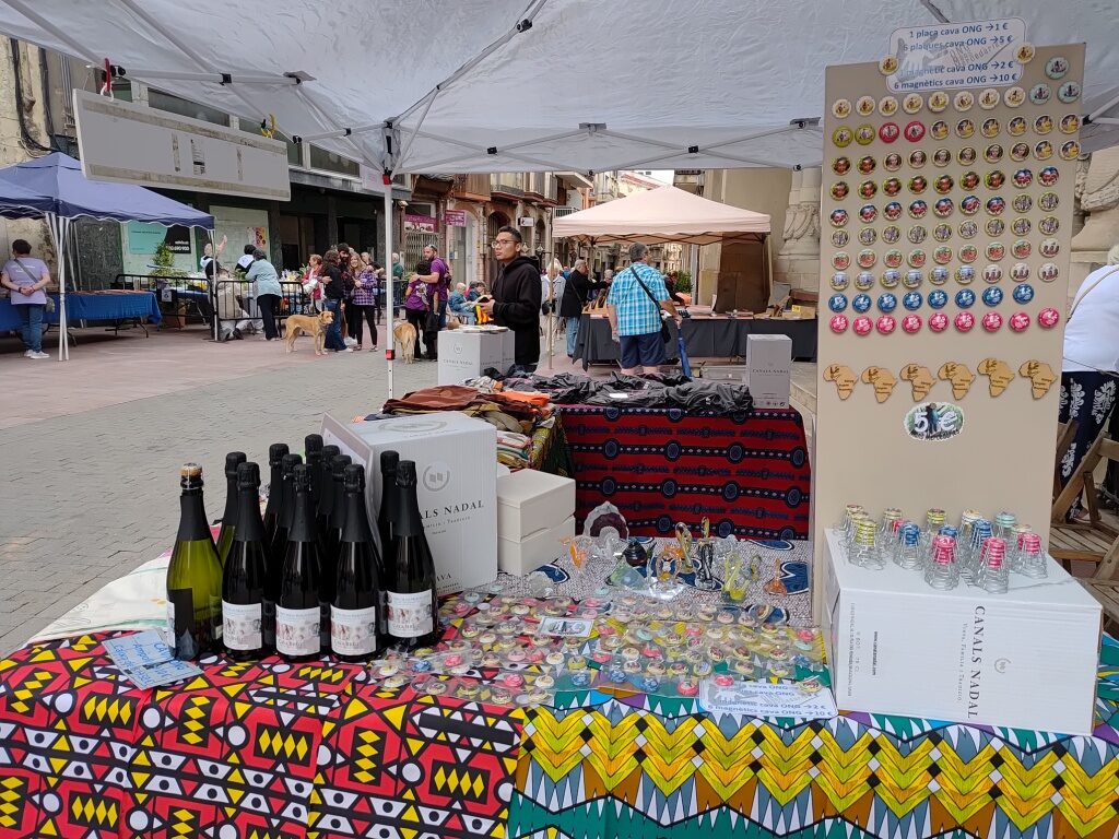 Davant del Círcol, l’ONG Mans Mercedàries hem posat la Parada Solidària del Cava, les Samarretes, magnètics fets amb plaques de cava i també dels productes d’artesania confeccionats per la Marisa Ledesma, Cosidora Solidària de Molins de Rei, que un any més ens ha omplert la parada de productes d’artesania fets per ella mateixa. També hem pogut posar els magnètics del mapa d’Àfrica i llibretes de fusta natural de «Manualidades de Madera» que la Irene Rojano i el Jose Ortiz ens havien fet per a la Parada Solidària.
